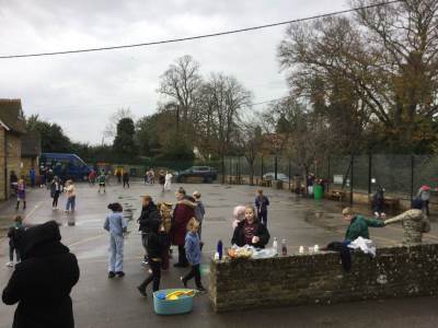 We sold Hot Chocolates in the morning before school and then sold cakes after school and raised over £100!